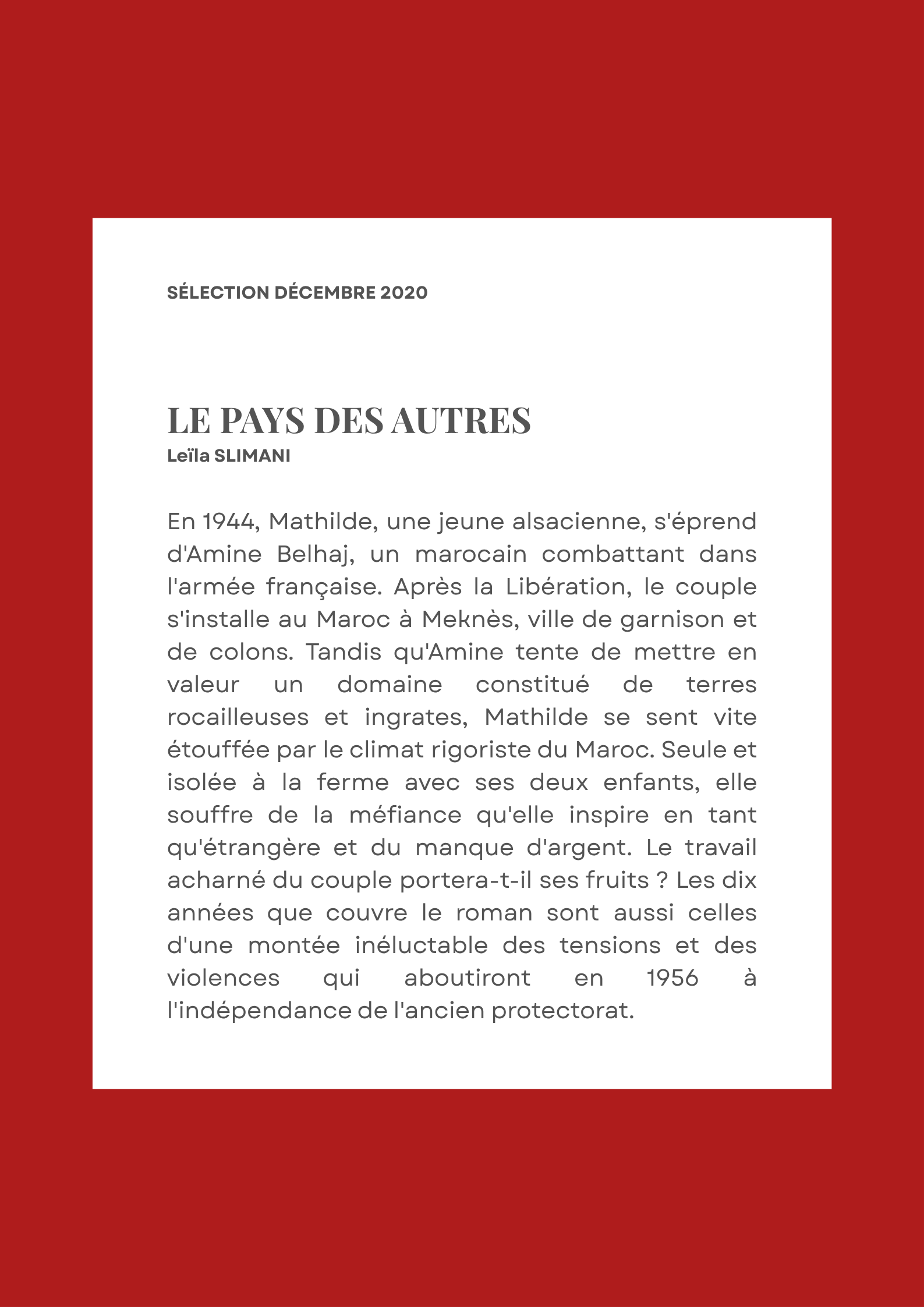 BOOK CLUBSélection – Décembre 2020par Lisamis à jour le 12 novembre 20252 janvier 2021Laisser un commentaire sur Sélection – Décembre 2020 COMMANDER EN LIGNE ÉCOUTER L'AUDIOBOOK TÉLÉCHARGER L'EBOOK VOIR LA VIDÉO AUTRES PARUTIONS