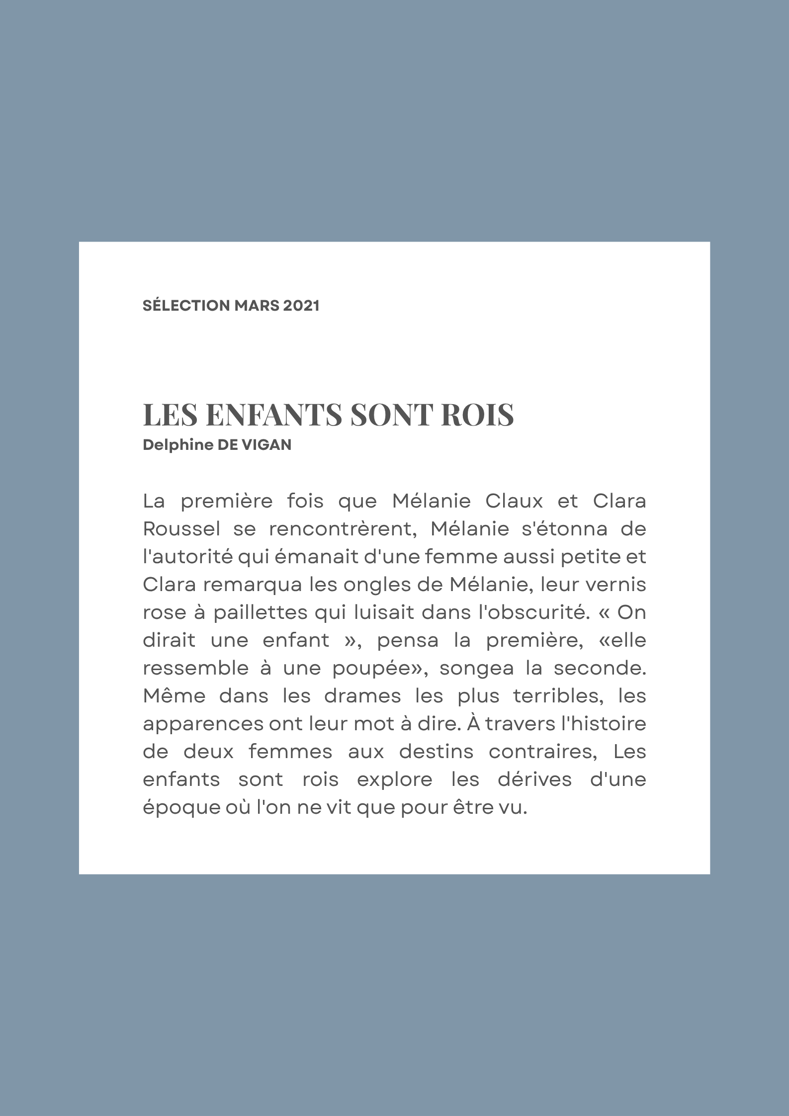 BOOK CLUBSélection – Mars 2021par Lisamis à jour le 12 novembre 20251 avril 2021Laisser un commentaire sur Sélection – Mars 2021 COMMANDER EN LIGNE ÉCOUTER L'AUDIOBOOK TÉLÉCHARGER L'EBOOK VOIR LA VIDÉO AUTRES PARUTIONS