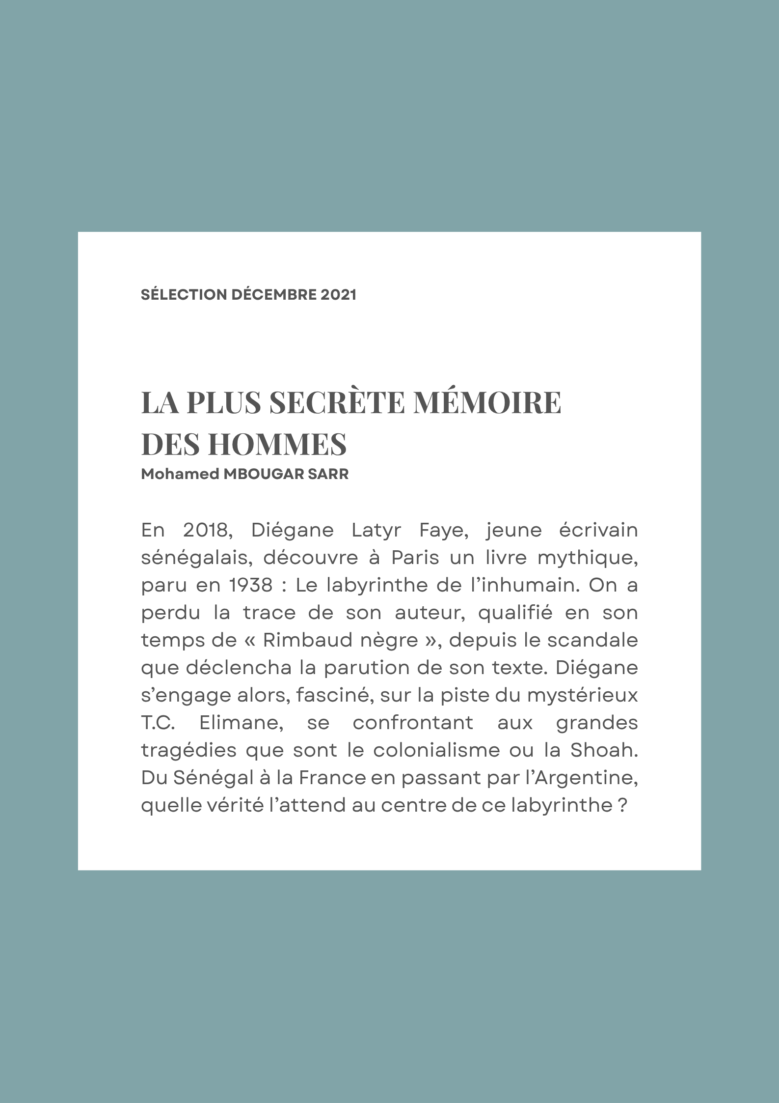 BOOK CLUBSélection – Décembre 2021par Lisamis à jour le 12 novembre 20252 janvier 2022Laisser un commentaire sur Sélection – Décembre 2021 COMMANDER EN LIGNE ÉCOUTER L'AUDIOBOOK TÉLÉCHARGER L'EBOOK VOIR LA VIDÉO SUIVRE L'AUTEUR DERNIÈRES PARUTIONS